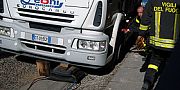 Sprofonda un tratto di via Cavour, nel centro storico di Alghero. Per liberare l'autocarro necessario l'intervento dei Vigili del Fuoco