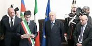 Il Presidente della Repubblica Giorgio Napolitano accolto dal sindaco del comune di Cagliari, Massimo Zedda. Le parole del sindaco e quelle del Capo dello Stato