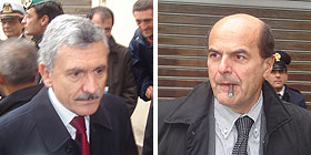 Nella foto: I ministri Massimo D’Alema e Pierluigi Bersani, questa mattina in Piazza Civica