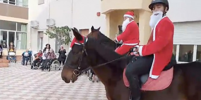 ALGHERO - Nella giornata di Santo Stefano, i cavalieri del maneggio "il Grifone" di Alghero guidati da Cosimo Guillot hanno portato gli auguri vestiti da babbo natale a cavallo agli anziani delle tre case di riposo cittadine. Sono stati donati, come sempre, panettoni e pandoro: Grande soddisfazione degli ospiti delle residenze per anziani. Si tratta della 19° edizione della passeggiata che ormai, è entrata di diritto nella tradizione natalizia algherese.