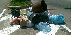 Sacchetti dei rifiuti e scatole di cartone occupavano la sede stradale affianco alle curate aiuole spartitraffico. Uno sgradito biglietto da visita per turisti e non proprio all'ingresso di Alghero.
