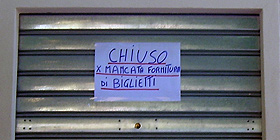 La scritta "chiuso per mancata fornitura di biglietti" era là, esposta nella serranda, da martedì 10 agosto. Dopo quasi 3 giorni si è provveduto a ripristinare il servizio.