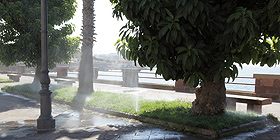 ALGHERO - Irrigatori inopportuni sui Bastioni Cristoforo Colombo di Alghero. Si attivano all'improvviso in orari anomali, quando la splendida passeggiata che guarda il mare è presa d'assalto da passanti e turisti. Indispensabili per irrigare le aiuole, oggi ben curate, meno quando ad essere bagnate sono le persone.
