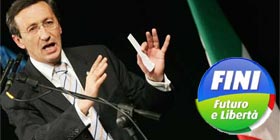 Nella foto: Gianfranco Fini e il nuovo simbolo di Futuro e Libertà