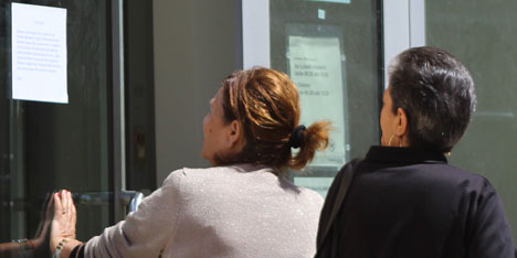 Nella foto: utenti leggono il cartello di protesta presso l'ufficio postale